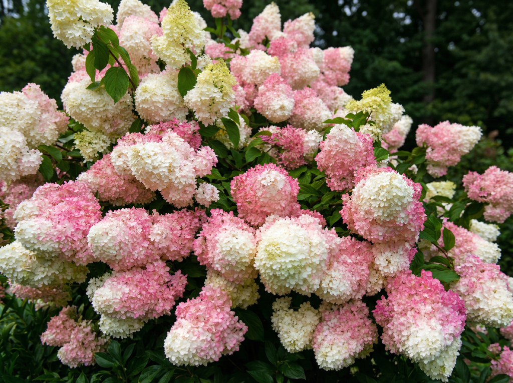 Характеристики цветения (Знаменитый переход цвета): Цветение «Ванила Фрейз» — это захватывающий спектакль, который длится несколько месяцев: