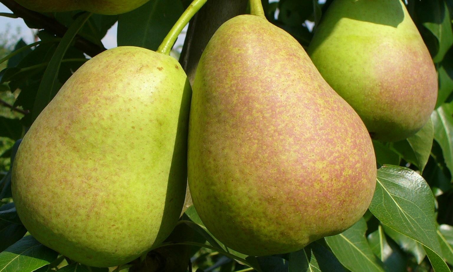 Плоды: 100-120 г, грушевидные, зелёные со слабым румянцем