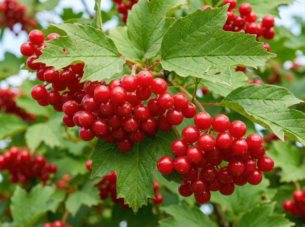 Мощнейшая польза: Калина — чемпион по содержанию витамина С и железа. Но главная её ценность — способность мягко снижать артериальное давление и укреплять сосуды. Зимой чай или морс из калины с медом — лучшее средство от простуды и кашля.
