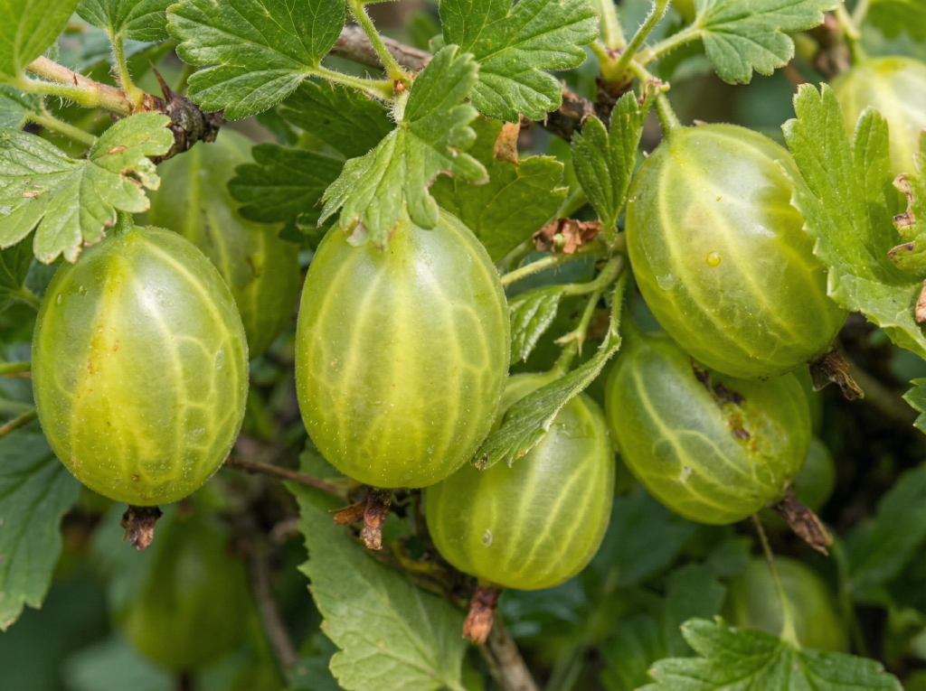 Плоды: Очень крупные (7-9 г), округло-овальные, насыщенного темно-красного цвета. Кожица плотная, но не грубая.