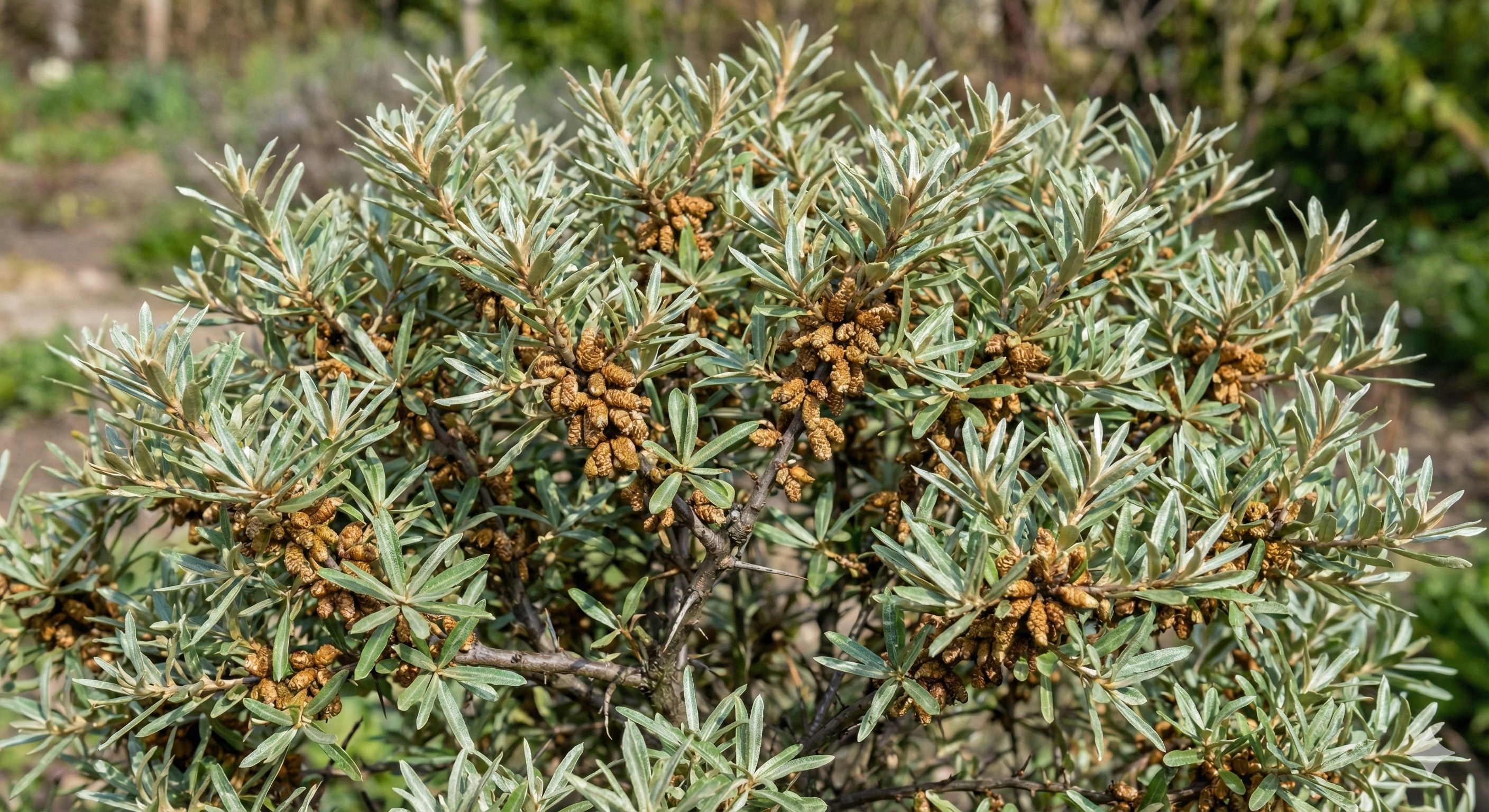 Зачем нужен сорт «Гном»? Облепиха — двудомное растение. Это значит, что есть «женские» кусты, которые дают ягоды, и «мужские», которые только цветут и дают пыльцу. Сорт «Гном» — это «мужчина». Если вы посадите только женские сорта, они будут цвести, но ягод не завяжут. Одного куста сорта «Гном» достаточно для эффективного опыления 4–6 женских растений, растущих на расстоянии до 15-20 метров.
