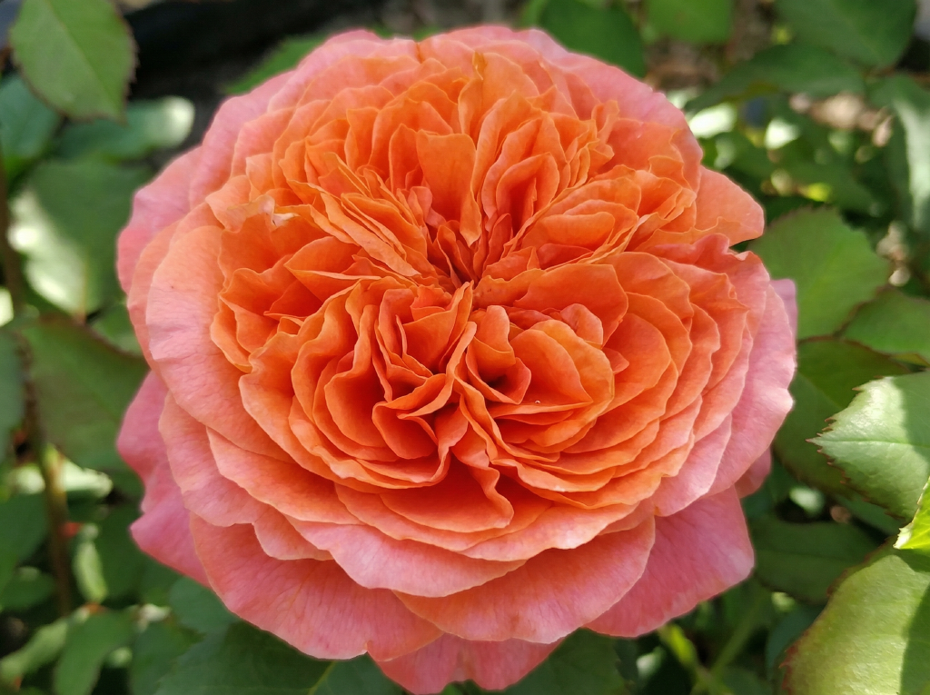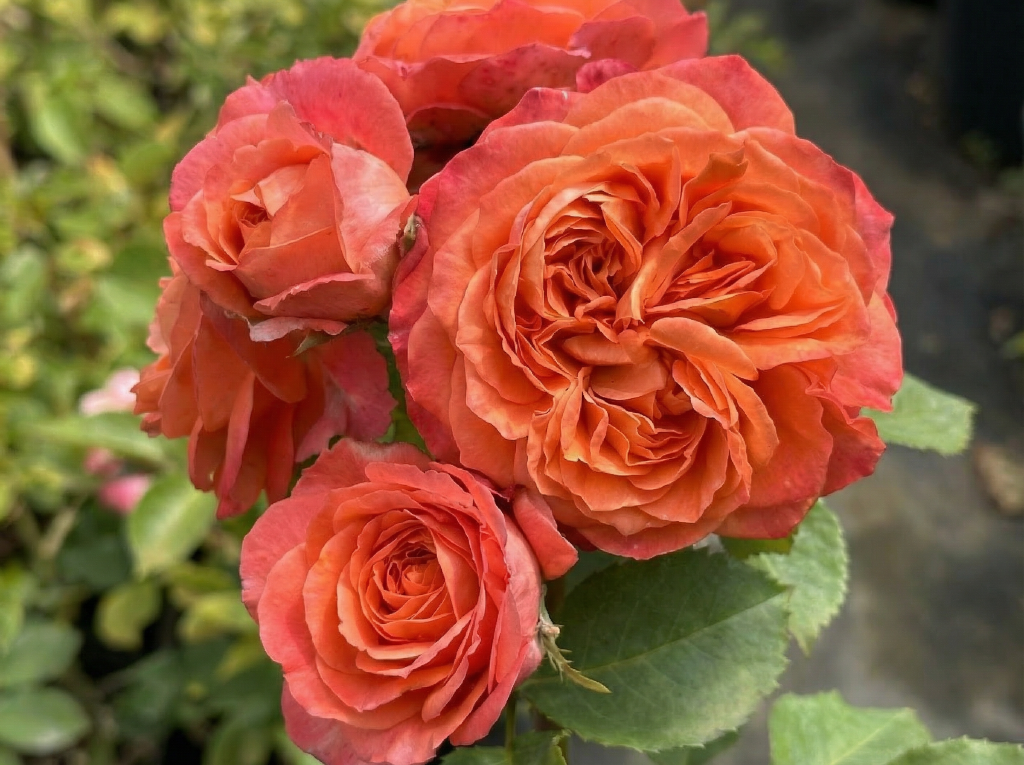 Цветки от лососево-оранжевого до ярко-оранжево-красного, чашевидные или слегка розетковидные, густомахровые, содержат 60–80 лепестков, достигают диаметра 12 см. Бутоны одиночные или собраны в соцветия по 2–3 штуки.