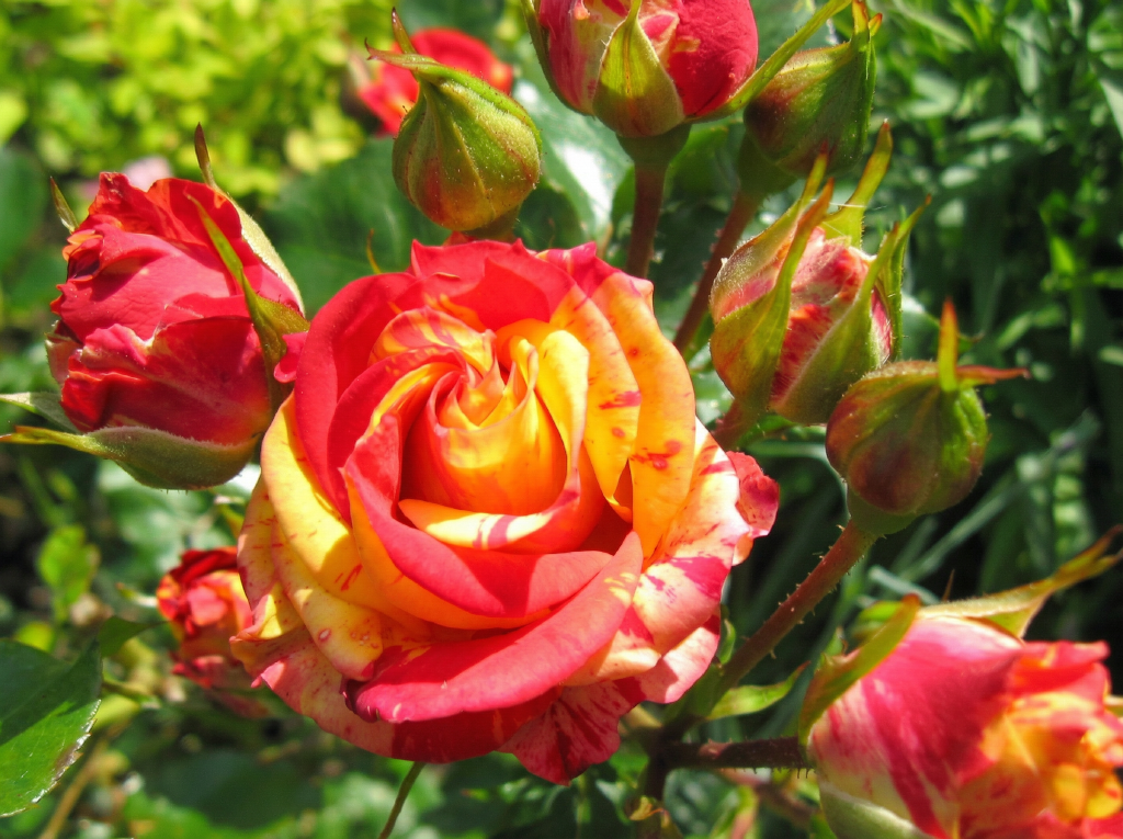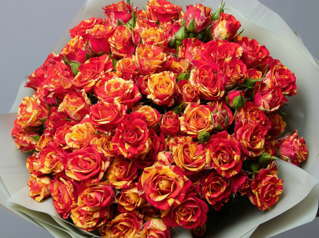 Перед вами настоящая «огненная вспышка» в саду! «Файер Флеш» — яркий представитель группы спрей-роз голландской селекции. Этот сорт покоряет своей необычной двухцветной окраской, обильным цветением и неприхотливым характером, что делает его прекрасным выбором для вашего сада.