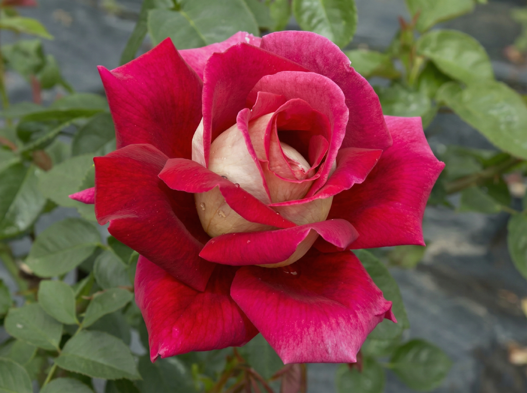 Крупные бокаловидные бутоны постепенно раскрываются в махровые цветы классической формы. Окрас — глубокий, бархатистый темно-красный с легким винным оттенком. Лепестки плотные, с волнистыми краями, что придает цветку особый шарм и объем.