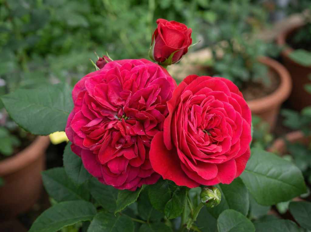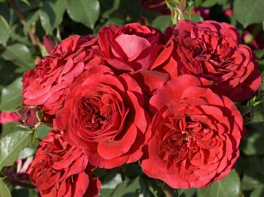 Цветки розетковидные, диаметром 10–12 см, густомахровые, содержат 80–85 лепестков. Цветки ярко-красные, располагаются на ветке по 3–5 штук. В конце августа и осенью лепестки приобретают тёмные винные оттенки и сохраняют интенсивность окраса на протяжении всего цветения.