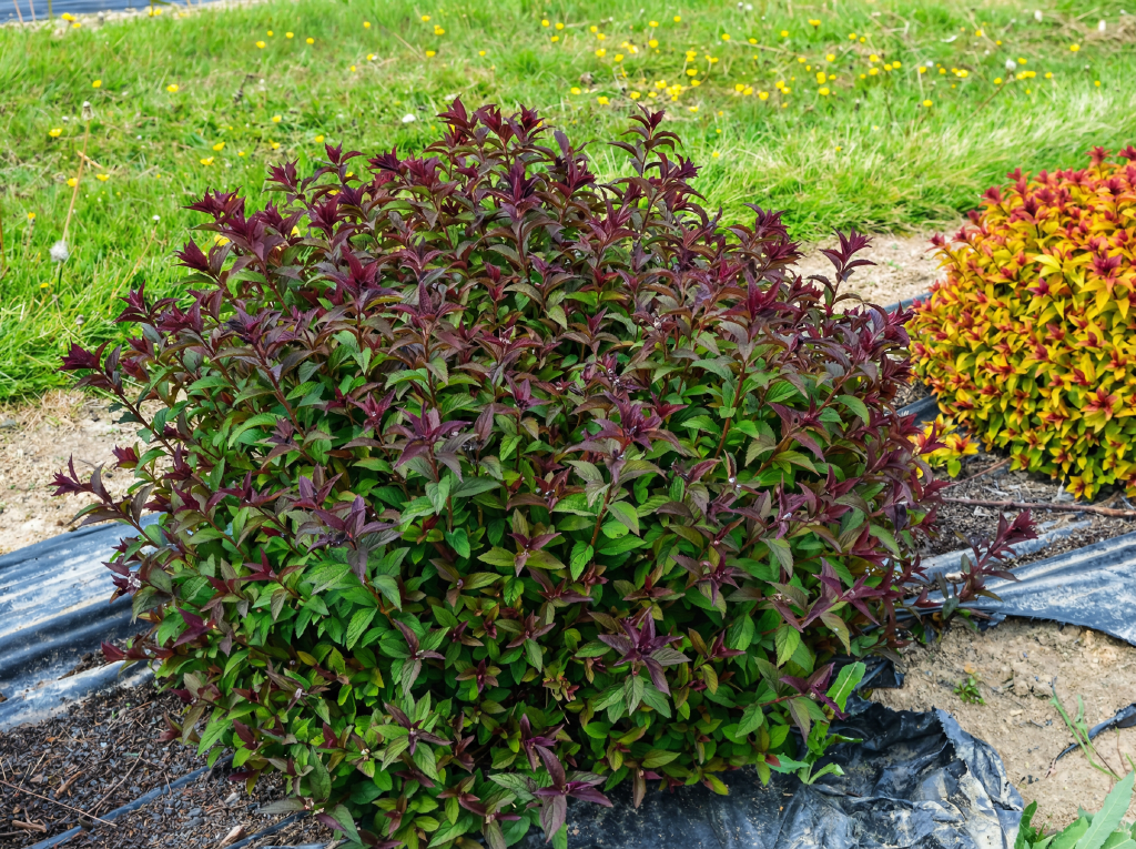Компаньон: Отлично смотрится в миксбордерах на переднем плане, хорошо сочетается с хвойными, хостами и другими кустарниками с контрастной (например, желтой или пестрой) листвой.